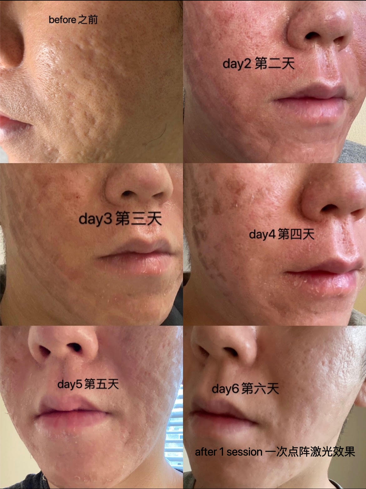 You may need more than one treatment session, depending on the treatment required and intensity of the laser used. One treatment every 4-6 weeks.